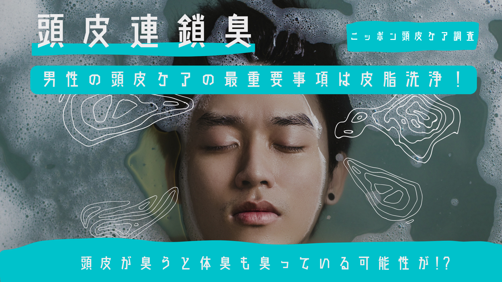 ※)頭皮連鎖臭について: 頭皮のニオイの主な原因は皮脂。皮脂は体臭の原因にも共通し、頭皮のニオイケアが行われず、放置されている状況では、同時に他の部位からもニオイが発生している可能性があることを指します。