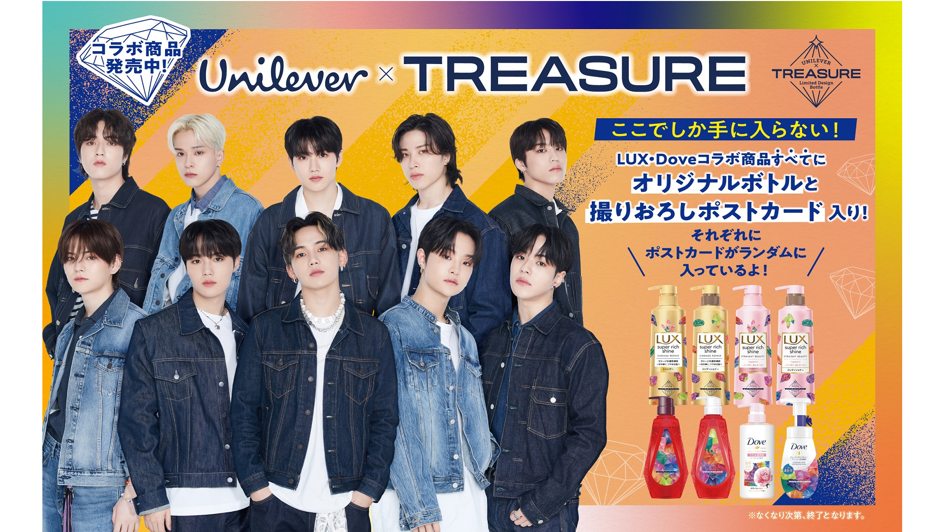 ユニリーバ・ジャパン・カスタマーマーケティング株式会社(本社:東京都目黒区、代表取締役 社長:ジョイ・ホー)は、2023年11月13日(月)より、TREASUREとユニリーバのオリジナルコラボとして、限定デザイン品(シャンプー・コンディショナー、ボディソープ、洗顔料)を全国のドラッグストア・スーパー・ECチャネル等にて発売いたします。これらコラボ品には必ず1枚、撮りおろしのオリジナルポストカードをランダムに同梱いたします。