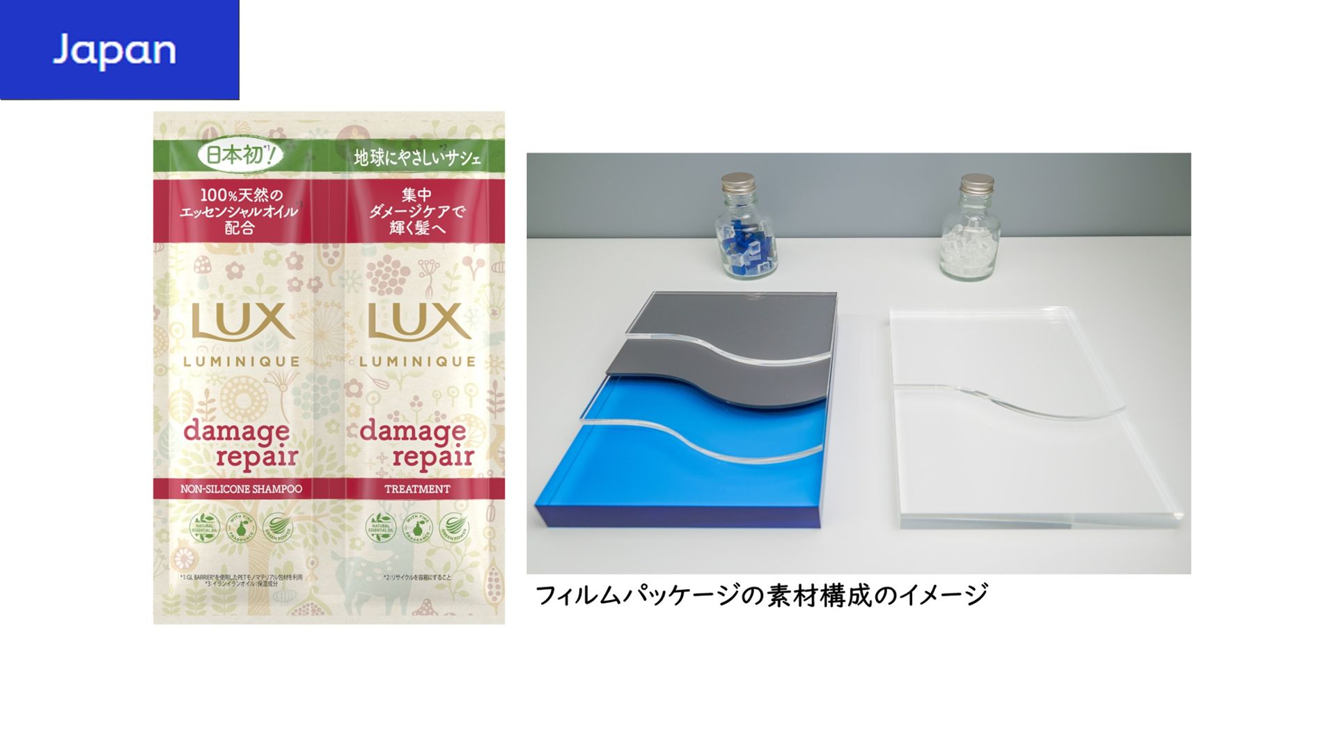 「Better Plastic」は、再生プラスチックや、リサイクルしやすいプラスチックを使うことをいいます。2022年末までに全世界で使用するプラスチックの22%を再生プラスチックに切り替えました。日本でも、PET(ポリエチレンテレフタレート)素材のボトルはほぼすべて再生PETに切り替え、より技術的に切り替えの難しいPE素材を使っている「ラックス スーパーリッチ」「ダヴ ボディウォッシュ」「ネクサス」などのボトルも再生PEへと切り替えました。また、よりリサイクルしやすい仕様への変更も進めています。